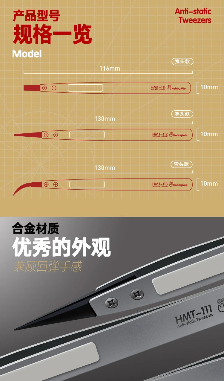 | Size | HMT-111 Flat, HMT-112 Tip, HMT-113 Angled |